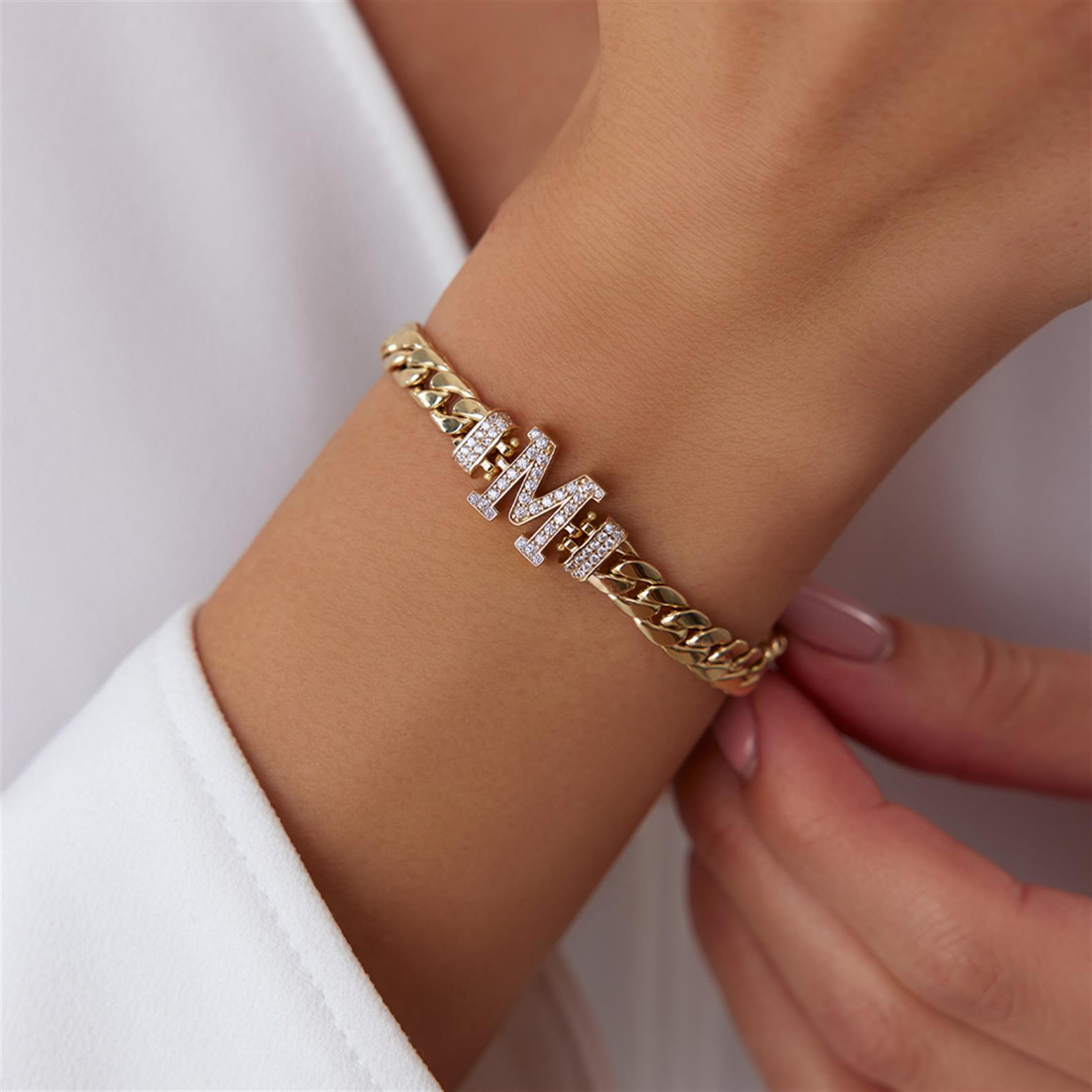 Taşlı Harf Altın Bileklik