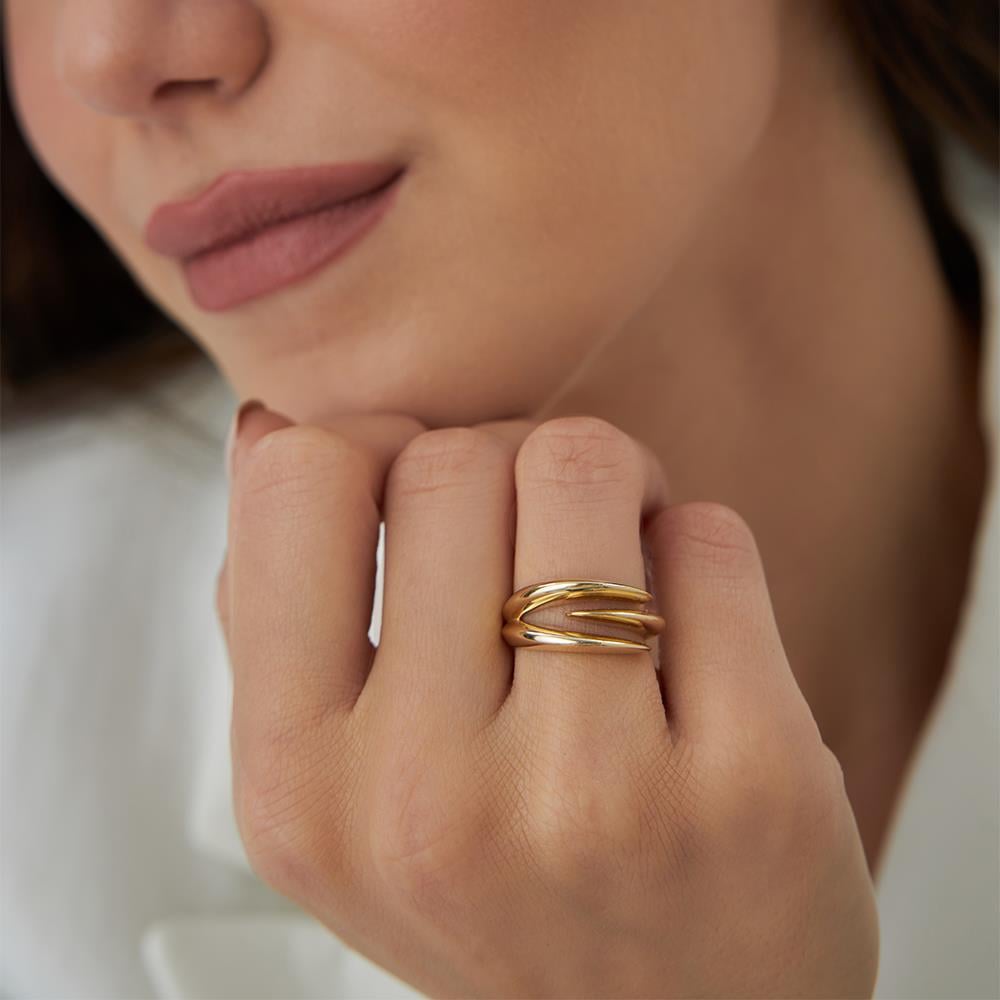 Üçlü Çizgi Pençe Altın Yüzük