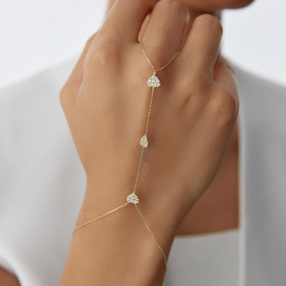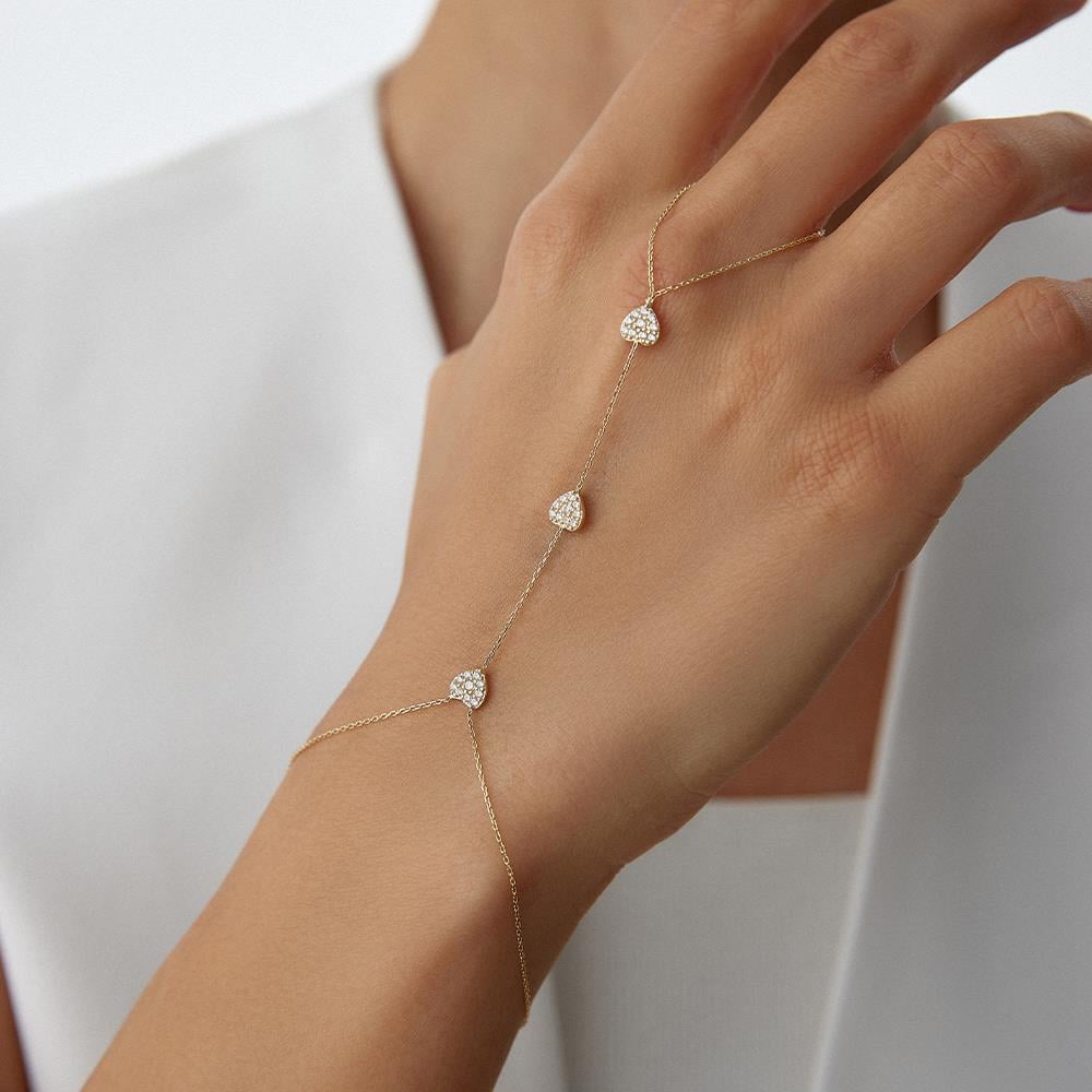 Üçlü Taşlı Altın Kalp Şahmeran Bileklik