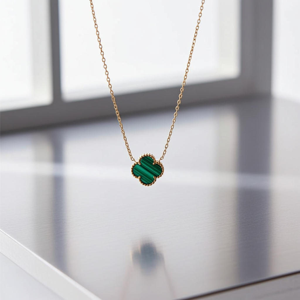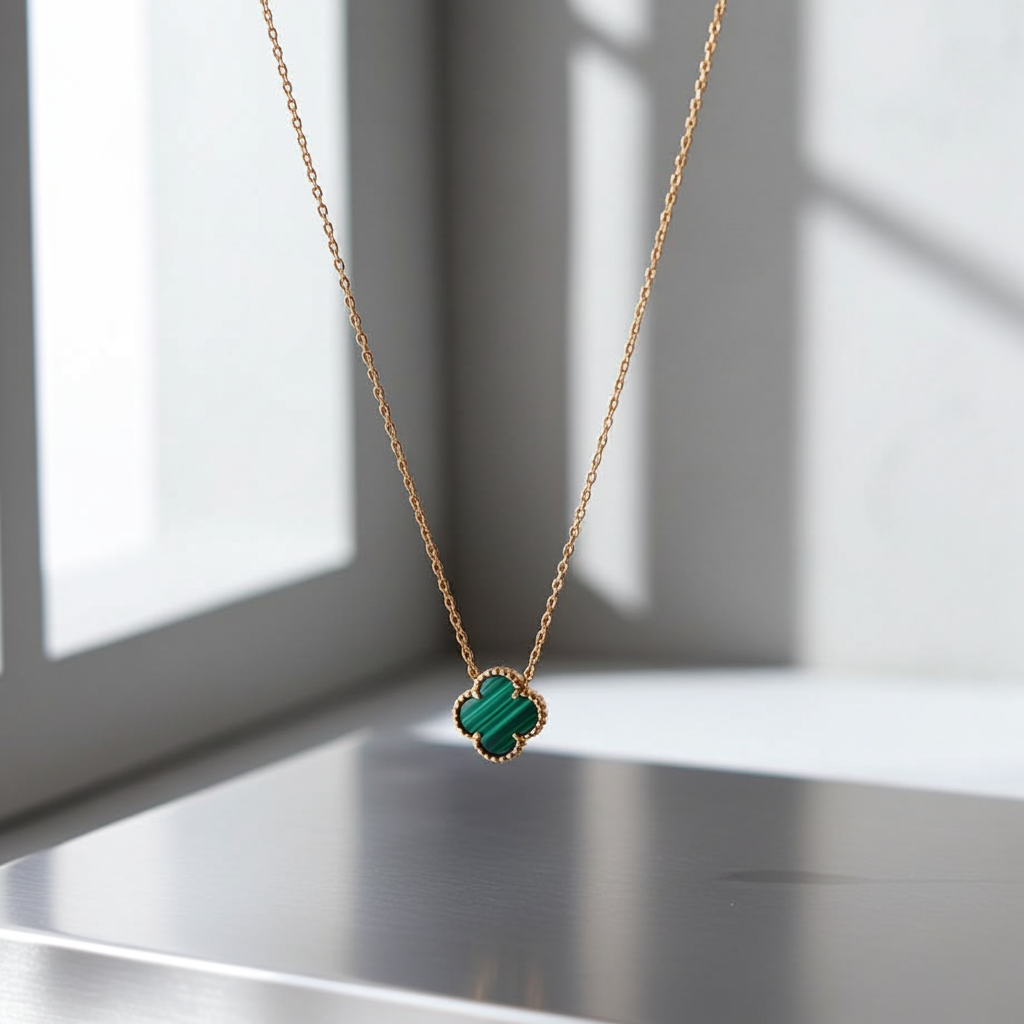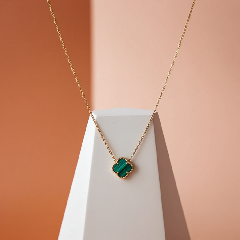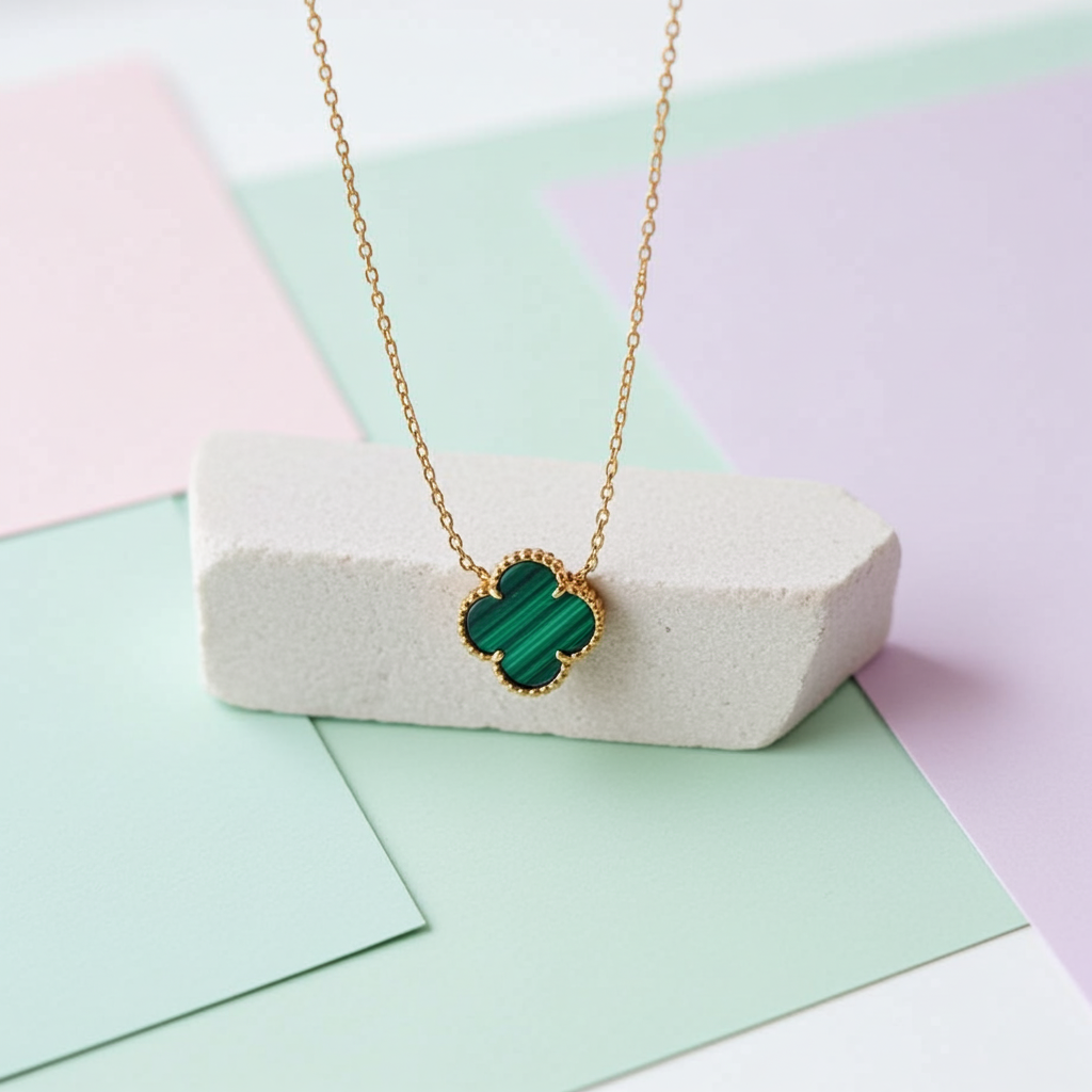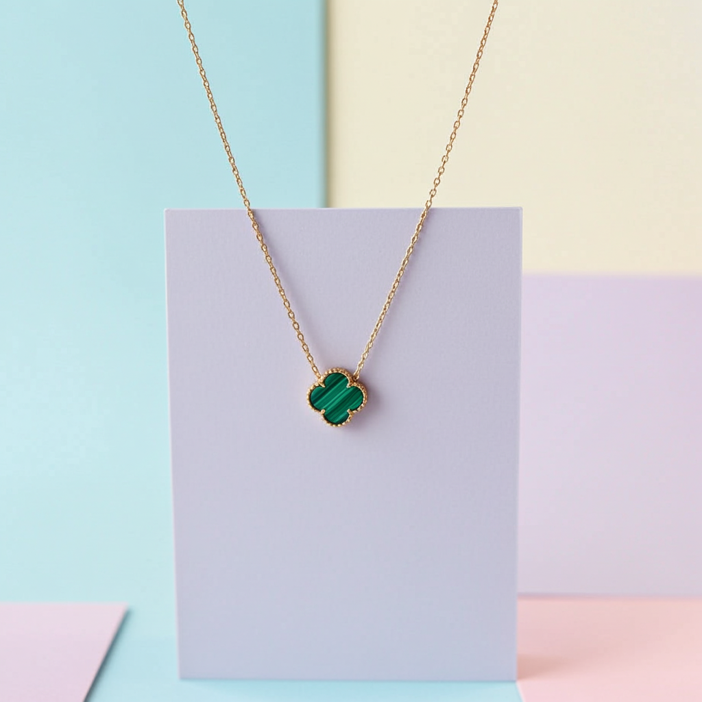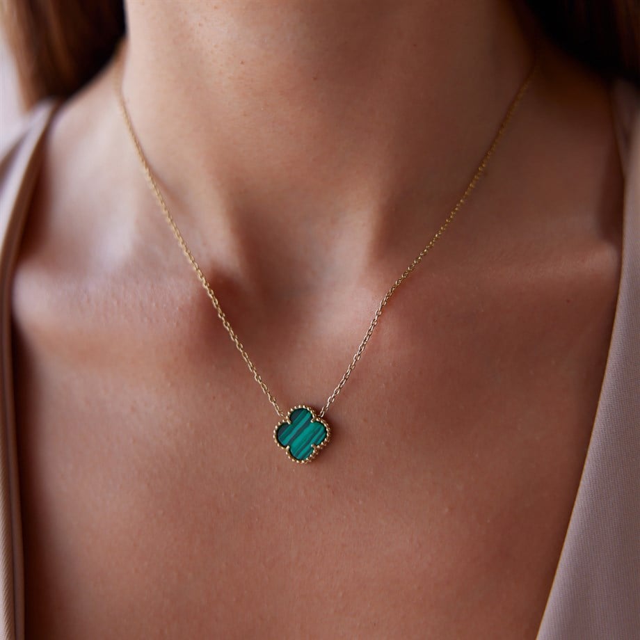 Yeşil Mineli Yonca Kolye