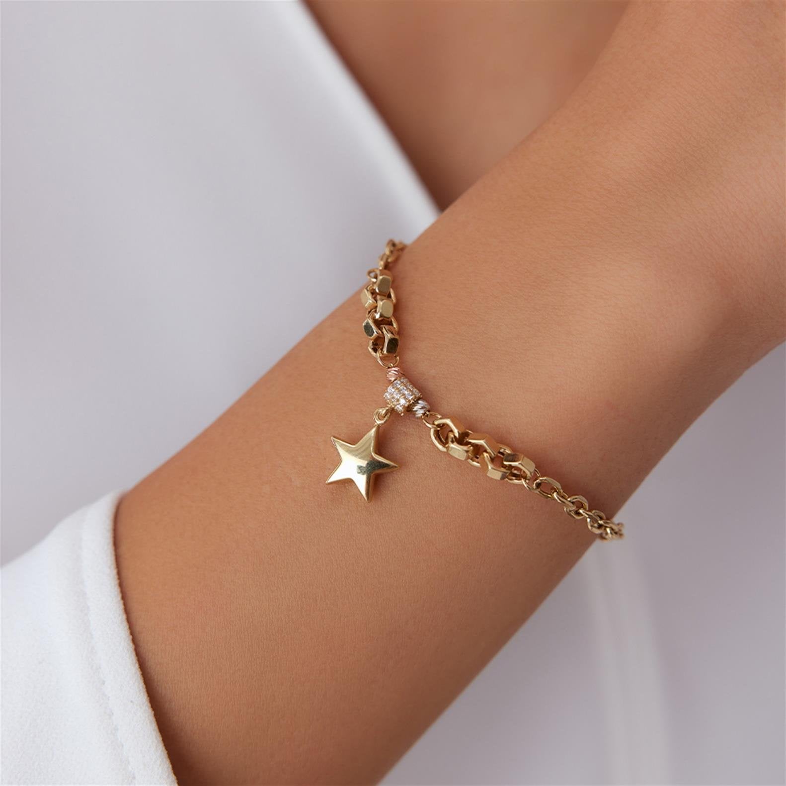 Yıldız Figürlü Çoklu Zincirli Altın Bileklik